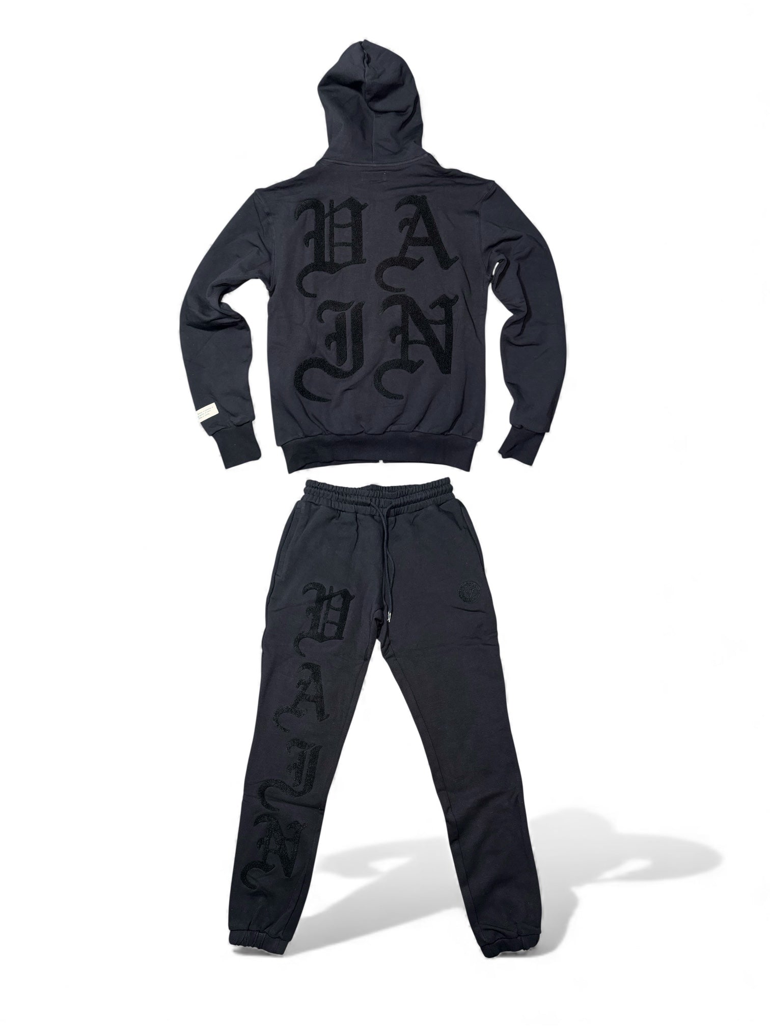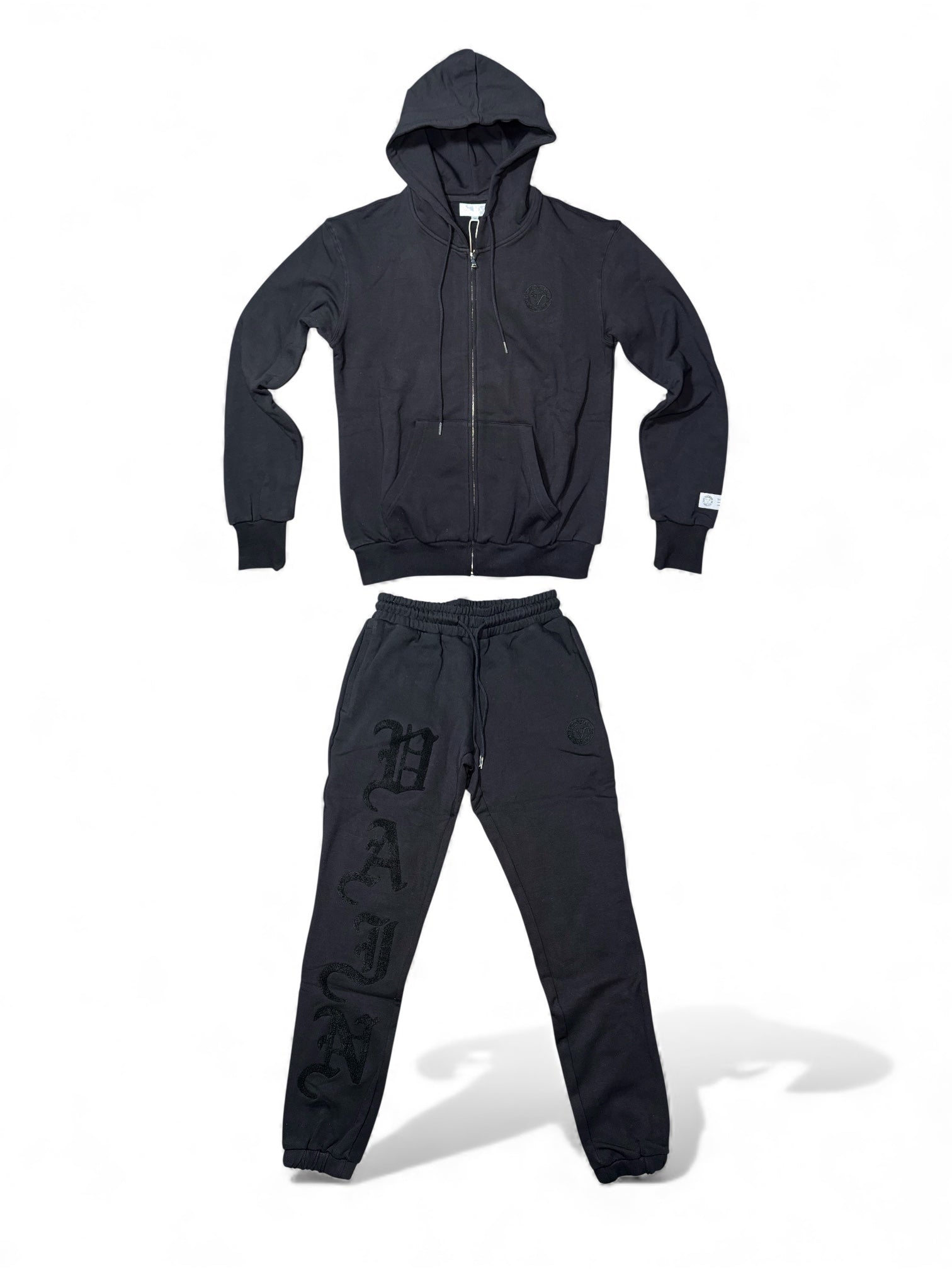Black Bold Logo Sweatsuit - XS is backordered and will ship as soon as it is back in stock.